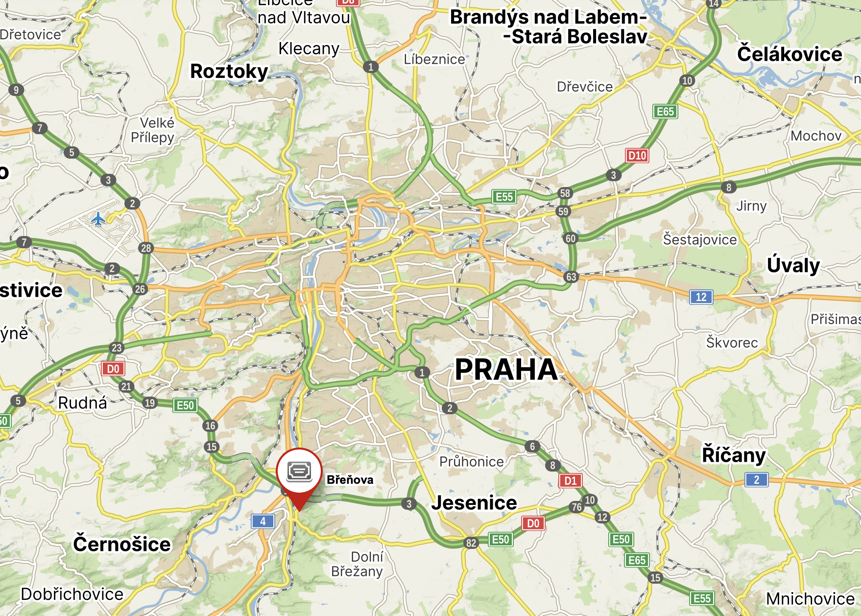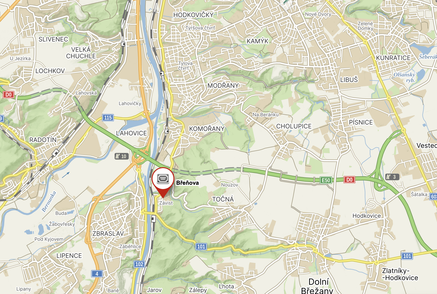 Spojení městskou hromadnou dopravou je výborné. Pár kroků od pozemku najdete autobusovou zastávku s linkami směrem na metro nebo Zbraslav. Jezdí zde také vlak s přímým spojením do centra Prahy městskou linkou S.