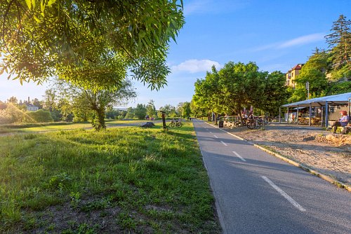Základní školu i školku najdete ve Zbraslavi, která se nachází jen přes Vltavu, jednu zastávku autobusem. Za pár minut dojedete také na dvě golfová hřiště – osmnáctijamkové Zbraslav Golf Resort a příjemnou devítku s drivingem Golf Park Praha. Kousek od pozemku vede podél Vltavy cyklostezka směr do centra Prahy nebo naopak ven, k Berounce.
